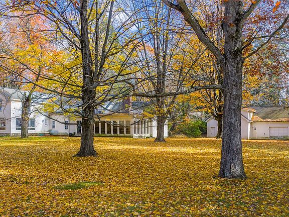 Nestled on 24.5 scenic acres, this classic 1910 farmhouse offers endless potential for those looking to restore a piece of history. A long, tree-lined driveway leads to this charming 4-bedroom, 4-bath home surrounded by open fields, mature trees, and peaceful country views. The property features a spacious 4-car garage with finished living space with Full bathroom bathroom above. Inside, the home retains much of its original character, with hardwood floors throughout, crown molding, and hidden staircases adding to its timeless charm. The inviting entry opens to a quiet library or office with a fireplace, a sunroom with two walls of windows overlooking the yard and patio, and a spacious living room anchored by a second fireplace. The large dining room, wrapped in glass and hardwood floors, is perfect for gatherings, while the kitchen awaits your personal touch. Upstairs, three bedrooms each offer unique character, while the large primary suite features hardwood floors, its own private staircase, a generous bath, and ample closet space. With room for horses, gardens, or simply relaxing in the peace and beauty of nature, this property offers the perfect blend of privacy, potential, and old-world charm.
