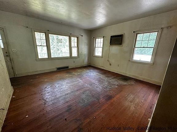 Charming Country Ranch with a rocking chair front porch and attached 2 car garage set on 1.10 acres in Red Hook 2 bedroom 1 bath full basement with walk out, will require cash or rehab financing