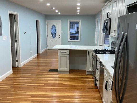 For rent at 64 Samoset Ave. in Hull, MA is a large (1075 sq. ft.), completely renovated, 4 - bedroom first floor apartment. Features include: * Newly renovated kitchen, spacious well-lit rooms and ample closet space * New cabinets, counters, and a full array of appliances * (2) New, very clean, aesthetically designed bathrooms with (decorative) tiling * Central air conditioning throughout * Large open-door porch/deck for outdoor dining and/or relaxing * Laundry facilities in unit * Large backyard with patio for cookouts/gatherings * Located within walking distance of Nantasket Beach, close to stores, restaurants, town parks, outlet shopping and minutes from historic Quincy and Boston. Prospective tenants will be evaluated using employment, background, credit and rental history reports. Lease Outline: Term will extend for twelve (12) months. A one (1) month security deposit is due at signing. Electricity and heat are tenant's responsibility; water and trash pick-up are supplied. All appliances (including refrigerator) will be provided. Two parking spots are provided for "registered" vehicles. Smoking is not allowed inside the building. One or two indoor cats are OK and one small (15-50 lbs.) dog allowed! Snow removal will be provided for all "common areas." All property landscaping and maintenance is performed by landlord-appointed professionals.
