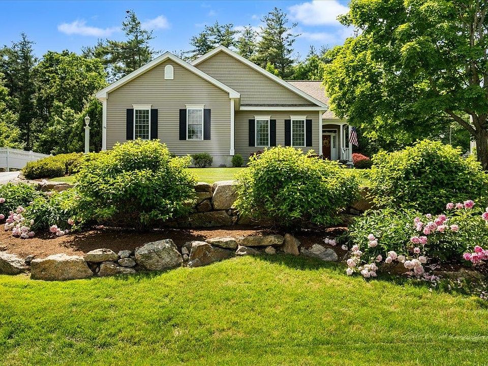Welcome to 64 Sandstone Drive in Bedford, NH! This Contemporary Ranch is located in the CONVENIENT neighborhood of Clark's Purchase. The second you enter the front foyer you will immediately notice the SOARING 9' ceilings and SPARKLING HARDWOOD FLOORS. Enjoy the cozy family room with gas fireplace right off the charming Dining Space. Through the double french doors, enjoy a private office space, or utilize as an additional bedroom. You will not be disappointed by the trayed ceiling Primary Bedroom hosting hardwood floors, a custom walk in closet and large en-suite. Finally, you can ENJOY your laundry room, a large pantry and your primary suite all on the same level living space with plenty of room to expand down to the lower level. Down to the lower level you will find an office/playroom space, a large family room with wet bar, and a 3/4 bath. Back to the main level, enjoy the SUNNY 4 season breakfast room and venture out onto the brick patio under the Cedar Pergola on a beautiful summer night. The Sellers are proud of the meticulous Exterior and Landscaping offering lawn irrigation to keep the grass GREEN! The roof was replaced in 2019 AND this home is accommodated by PUBLIC WATER, PUBLIC SEWER, CENTRAL AIR and NATURAL GAS! Located at the end of a cul de sac, this is the backyard you DO NOT want to miss.
