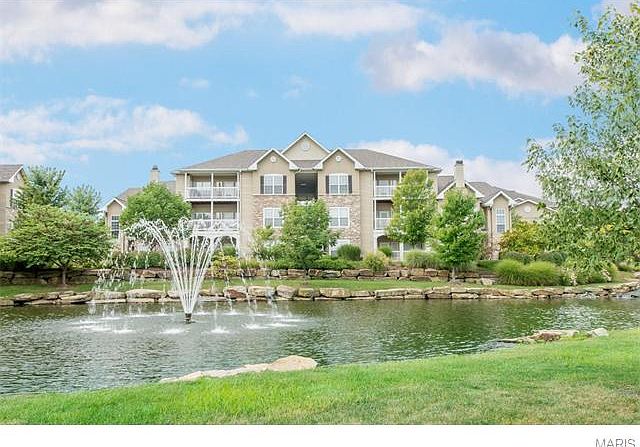 CAREFREE RESORT STYLE LIVING INCLUDING PRIVATE GARAGE and RESERVED CARPORT Designer 2-Bed, 2-Bath condo in the Boulders at Katy Trail! This maintenance-free community features luscious manicured grounds, 5+ lakes, clubhouse, indoor/outdoor pool, movie theater, fitness center, on-site car wash and more! Step right inside this open floor plan boasting 9ft ceilings, arched doorways, and gleaming cherry laminate flooring throughout. The beautiful Kitchen is sure to delight you with 42" white cabinets, stainless "Frigidaire" appliances, and granite countertops. Entertain in the inviting Family Room featuring coffered ceilings with crown molding, gas fireplace, and French door to large covered deck. Master Suite includes office area, walk-in closet, and Master Bath with dual sinks. Convenient location offers quick access to 364 leaving you minutes from Katy Trail, Historic Downtown St. Charles, Westport & countless popular entertainment venues.