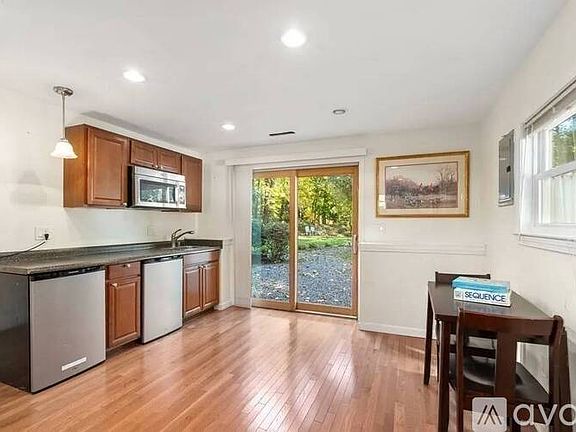 Lovely Furnished Studio in Scenic Wayland All Utilities Included Flexible Lease Terms: 2 to 12 Months Welcome to your peaceful retreat in the heart of Wayland. This beautifully furnished au pair studio suite offers privacy, comfort, and convenience on a charming property surrounded by nature. Perfect for short-term stays, relocations, or transitional housing. Features You'll Love Private entrance for maximum convenience and independence Modern private bathroom with updated finishes In-unit washer and dryer exclusively for your use Fully furnished just bring your suitcase All utilities included: heat, water, high-speed Wi-Fi, and trash service Simple move-in: no security deposit, only first and last month's rent Prime Wayland Location This studio is ideally situated with easy access to daily necessities and major commuter routes. Within a short walk you'll find: Grocery stores Post office Banks Restaurants and cafes Commuting is a breeze with Routes 30, 27, 9, 128, and the Mass Pike nearby offering quick connections to Boston, Cambridge, and the surrounding area. Nature at Your Doorstep Step outside and enjoy 20 acres of conservation land, ideal for: Walking, running, or biking Relaxing outdoor strolls Spending time with your pet Available Now Flexible lease options starting at 2 months up to 12 months Contact today to schedule a private showing or request more information A Lovely Studio in Beautiful Wayland Welcome to this charming au pair studio located in the scenic town of Wayland. This private suite offers a peaceful and comfortable living space, perfect for your needs. Studio Features Private entrance for your convenience and privacy. A stunning, modern private bathroom. In-unit laundry to make life easy. The studio comes fully furnished, so you can move right in. Prime Location The property boasts an unbeatable location with a quick walk to essential amenities, including: Grocery stores The post office Banks A variety of restaurants You'll also have easy access to major routes like 30, 27, 9, 128, and the Massachusetts Turnpike. A Nature Lover's Dream The home is situated on a beautiful property with a lovely backyard. You'll have direct access to 20 acres of adjacent conservation land, which is perfect for: Biking Walking Strolling with a pet Come and enjoy this beautiful studio au pair suite on a wonderful property! Lease Terms: Flexible lease: 2-month minimum. Costs: First and last month's rent due at signing. No security deposit required. All utilities included: Heat, water, high-speed Wi-Fi, and trash pickup