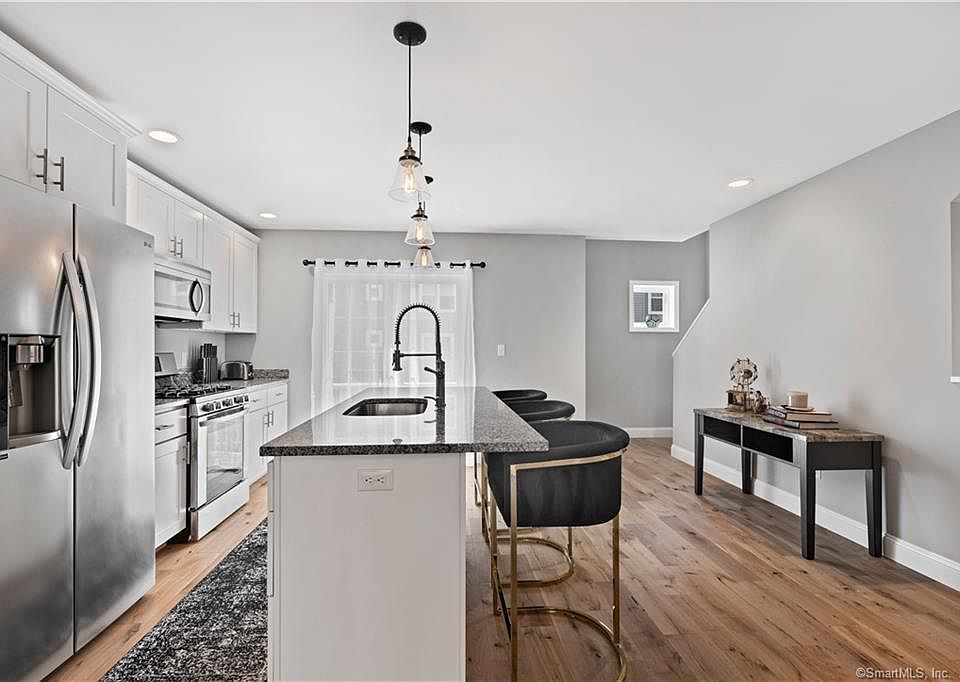 Welcome to this immaculate 2 bedroom, 2.5 bath Thames Landing townhome! Enter the lower level through your private garage or front door and find ample storage and a large room to use as you wish…exercise, media or work from home office! Head upstairs to the main living area to find a gorgeous kitchen with white cabinetry, granite counters, a large center island, stainless appliances and beautiful hardwood floors throughout. The open floor plan allows space for a dining area as well as a comfortable living room. A powder room completes the main level. Off the living room, step outside your sliding doors to a private patio adjacent to additional parking which makes bringing in the groceries a breeze! On the upper level you’ll find 2 ensuite bedrooms with walk-in closets. The primary bedroom has an additional walk-in closet which has been finished with built-in shelving and drawers. The stacked washer/dryer unit is also on this level. Thames Landing is just minutes to Connecticut College, the Coast Guard Academy, Electric Boat, Pfizer, I95 and I395. The complex has a swimming pool, tennis court and abuts open space with walking trails for exploring! Just two years young, do not miss the opportunity to view this well cared for and lightly lived-in townhome!