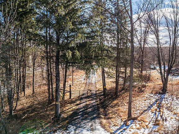 Nestled in a serene and private setting, this 43+ acre property is a rare find, offering endless possibilities for those seeking a dream home or recreational retreat. Positioned on a desirable flag lot, the land ensures seclusion while still being accessible. A gated graveled driveway leads to a cleared homesite area, ready for construction. The level, wooded landscape is enhanced by a network of trails and meandering