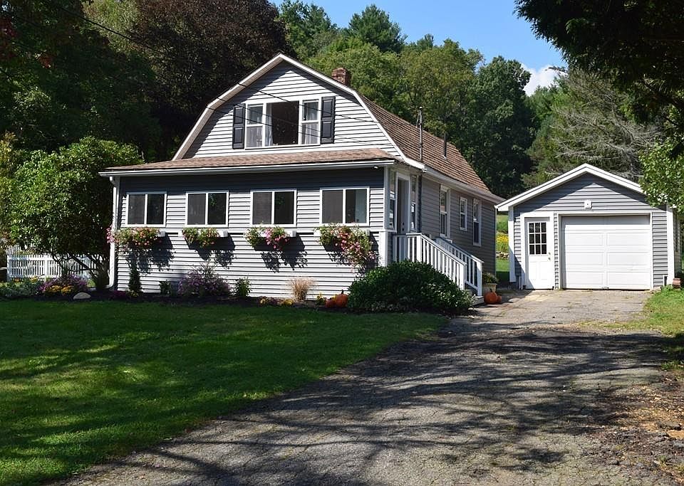 Beautiful and immaculate 3 bedroom home with gorgeous yard and stunning views! Open floor plan with hardwood floors throughout. Beautiful granite counters and cabinets, granite island, new appliances, updated electrical to also include hard wired smoke detectors. Kitchen opens to spacious outdoor deck with scenic views. Enclosed porch off living room for relaxing. First floor bedroom and two additional bedrooms with hardwood flooring on second floor. Staircase has wrought iron railings for an open feel. Plenty of room in the basement for an additional family room, hobby room, etc. Large shed for lawn tools. Two minute walk to Powder Mill Park, 15 minutes to Ma. Pike.