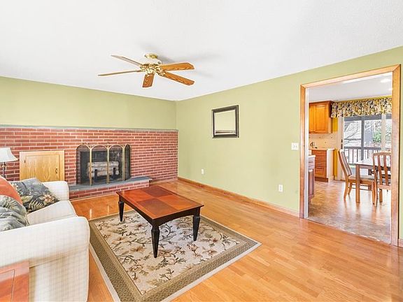Welcome home to Barrington! What a great opportunity to own a Ranch home in the Hampden Meadows neighborhood. Three bedrooms, two full and 1 half bathroom. In-law potential as well! Eat-in-kitchen with sliders to the covered back porch. Spacious living room with brick fireplace. Hardwoods throughout! Full finished basement with bathroom and laundry room with access from both the home and 2 car garage. There is so MUCH potential here!
