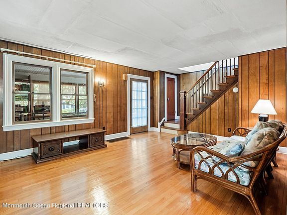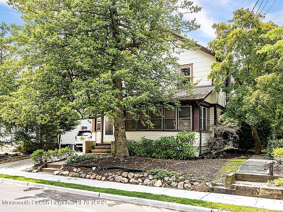 Great potential to update this wonderful colonial in the heart of Red Bank! Sun filled enclosed front porch leads to a large beautiful living room with fireplace, formal dining room and kitchen with slider to rear covered patio area, perfect for enjoying private outdoor space. Three bedrooms up, full bath, and additional semi-finished walk-up attic. Hardwood floors throughout! Large, clean basement with additional half bathroom, laundry area, and plenty of room for storage. Just steps to downtown Red Bank. Conveniently located to schools, shops, restaurants, GS-Parkway and just 10 mins to the beach.