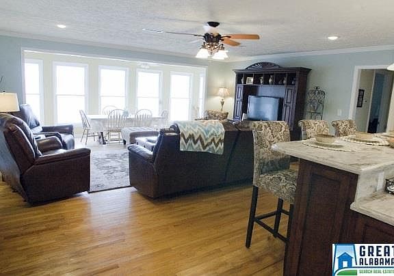LOGAN MARTIN LAKE 3 BEDROOM COMPLETELY REMODELED HOME WITH A VIEW YOU COULD ONLY IMAGINE. THIS ADORABLE HOME HAS SPLIT BEDROOMS AND AN OPEN FLOOR PLAN FROM THE KITCHEN THAT HAS BEAUTIFUL CORIAN COUNTER TOPS AND HARDWOOD FLOORS AND LEADS TO THE LIVING ROOM AND THE SUN ROOM ALL OVERLOOKING THE LAKE. CIRCULAR DRIVE AND A PRIVATE BOAT LAUNCH. SEAWALL AND PIER IN PLACE WITH A PAVILION SITTING RIGHT ON THE WATER TO ENJOY THE LAKE BREEZE.SO MUCH SPACE UNDERNEATH IT EVEN OFFERS A GREAT WORKSHOP AREA PLUS STORAGE AND SAFE ROOM.