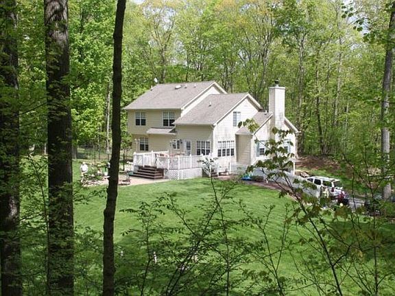 Easy commuting on Rt 80. Private setting w/large fenced yard & dog run. Open floor plan for fantastic entertaining. Huge family room w/cozy fireplace.Large kitchen w/ breakfast room. Enjoy nature from every window while eating. Scenic backyard, deck and front porch. Granite counters throughout, hardwood floors, master bath with his/her sinks and soaking tub. Public walking trails across street, farmland preservation behind home. Five minutes to Rt 80 for easy commute.