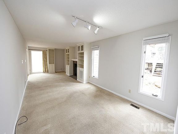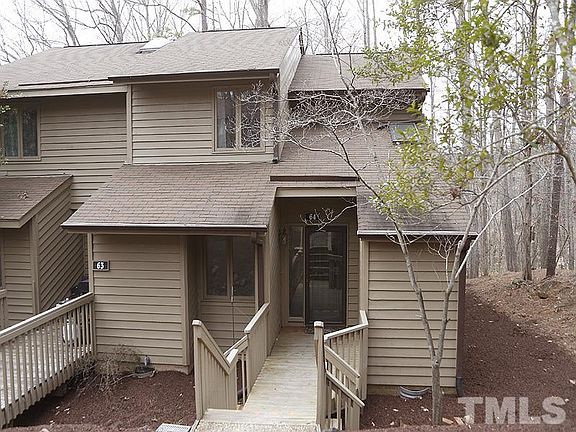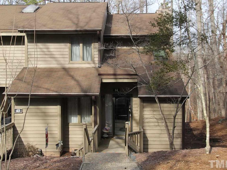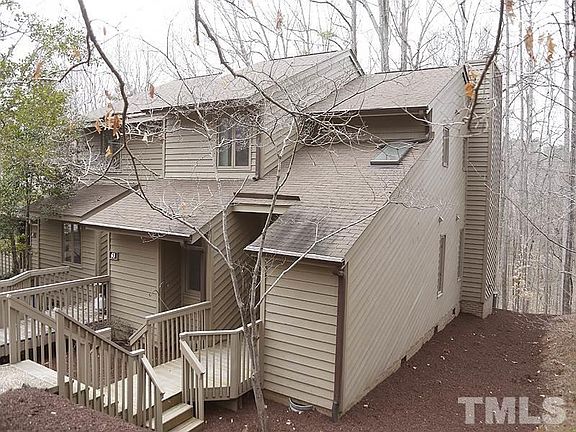 Move in ready. End unit. New paint throughout. Spacious and expanded living room with built ins and windows at rear over looking heavily forested view. Spacious combination kitchen/dining room also with wooded view. Newer Maple cabinets with solid surface counter tops. All appliances remain. Fireplace in LR/gas logs. Main level bedroom and full bath. Upstairs laundry with washer and dryer to convey. Two en suite bedrooms. Master over looks forest too. 5 minutes to Duke, 10 to downtown, 15 to Chapel Hill.