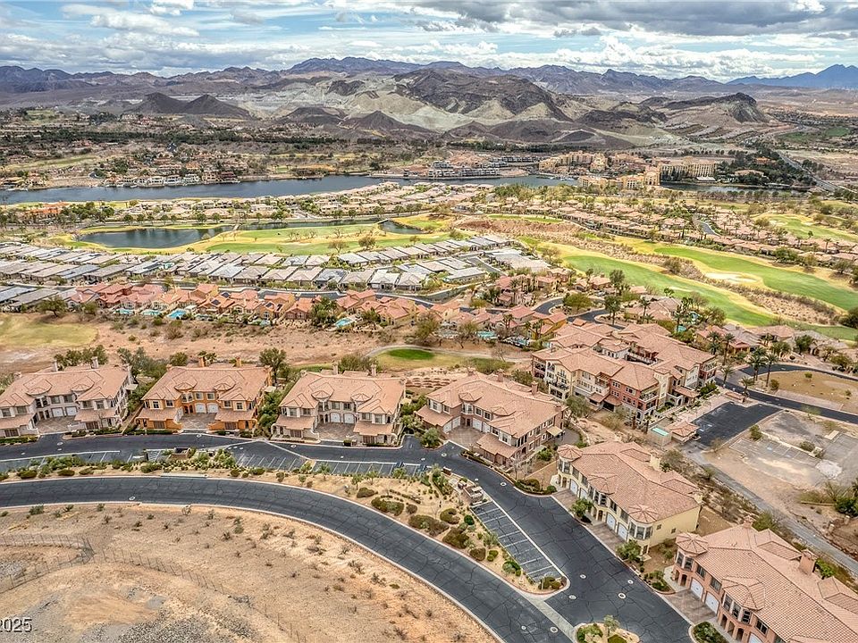 A beautiful golf condo that can easily serve as a 3 bedroom & boasts 3 baths, located in the gated community of Vila Di Lago w/ panoramic golf course & mountain views. A LLV Sports Club membership initiation fee ($25K value) is included, w/ tennis, pickleball, pool, fitness & more. The kitchen features SS appliances, granite counters & custom cabinetry, opening to a spacious family rm overlooking Reflection Bay Golf Course. The primary suite includes a full bath & walk-in closet, while the 2nd bdrm offers privacy, closet & bath. The den has a closet & full bath, perfect as a guest rm, office, or 3rd bdrm option. Extras include laundry rm, closets, elevator, gated courtyard, garage w/ 2 spaces & storage. Experience resort-style Lake Las Vegas living w/ golf, boating, beach, dining & shopping, just 17 miles from The Strip & 10 min to Lake Mead.