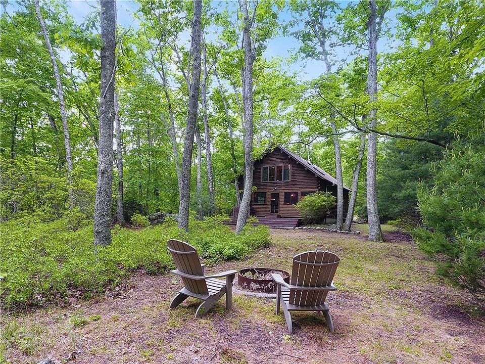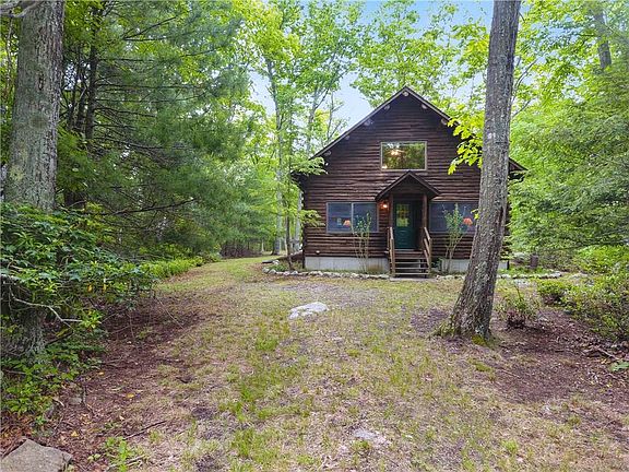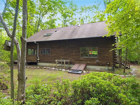 Lovely secluded log home located on 27 Beautiful acres abutting Ashville Pond Management Area. This special property has great appeal as an artist retreat, hunting lodge or just a weekend get away. Soaring great room with exposed beams and over sized windows, loft style open bedroom and private master. Comfortable screened porch with access to expansive deck. Carry your canoe to the pond for trout fishing or access the trails in Rockville Management area.