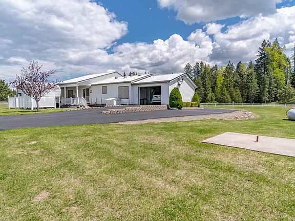 Great opportunity on this first time on the market property. This property offers a 2001 manufactured home, 1548 sq. ft, 3 bed, 2 bath, master bedroom suite & drive through 1 car garage. Enjoy the covered back patio along with a 37x60 shop with a work shop area and covered 43x32 RV parking with hookups. Endless potential on this 15 lush acres 6 miles south of Sandpoint.