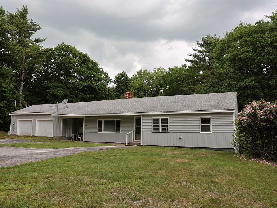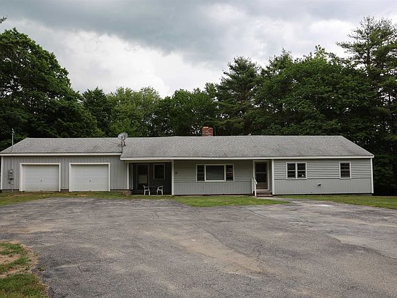 Spacious 3 bedroom, 1 bath ranch situated on 6.84+/- acres with attached oversized 28xx33 two-car garage and additional 33x15 storage shed off back of house. Old New England stone walls, private wooded lot on dead-end country dirt road in desirable Northwood location. Home features spacious living room with knotty pine walls and wood fireplace, large eat-in-kitchen, 33x15 mudroom, 3 good size bedrooms with plenty of closet space, full bath with double vanity. Newer 200 AMP electric panel and stand-by 14K Generac generator. Agent interest.