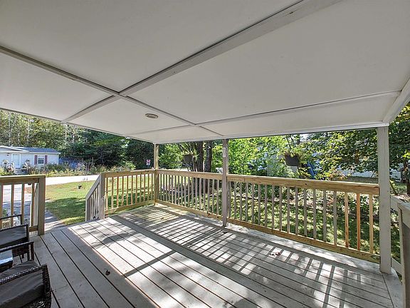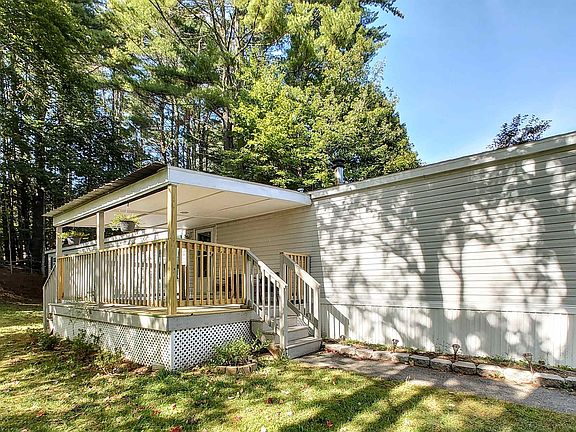 This property is all about getting more: 140 more square feet than the average single wide home, 3 larger than average bedrooms, 2 bathrooms and a separate laundry room, more space with an enclosed 3 season porch plus an attached deck and a patio, another large covered deck makes for more outdoor living / relaxing options, gardens to provide plenty of privacy on a very generous lot. All of this and still more: central A/C, beautiful skylights, updated flooring throughout, updated light fixtures, porch windows and door, durable metal roofing on the porches, 8' x 12' shed, and abundant perennial landscaping. Up to 2 outdoor pets allowed and the rent is only $480 per month (inc. trash, road maintenance and street plowing) well below average! Reasonably priced and ready for you to move in, come see your next home at the open house Saturday.