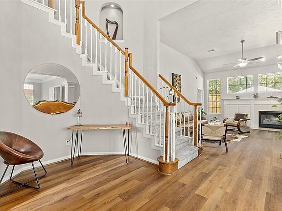 Situated in the beautiful Alden Bridge neighborhood of The Woodlands, youll find this spacious & light-filled two-story home. Youll love the open concept feel of the space, while having the opportunity to enjoy formal dining & living spaces. The kitchen includes granite counters, white cabinets, SS appliances & ample storage. The primary suite offers a view of the yard & an en-suite bath w/ dual vanities, jetted tub, shower, water closet & large walk-in closet. If you love to entertain, then youll love the backyard as it includes a large deck to enjoy while listening to music coming from the wired home sound system. An added bonus is the work shed! Secondaries are on the 2nd level, each with its own sizable closet. One of the rooms includes a 2nd large closet that can be converted into a 3rd full bath (*per seller). The large game room includes two walk-in closets perfect for seasonal storage & the space could easily serve as a 5th bedroom. Alden Woods Park within walking distance!