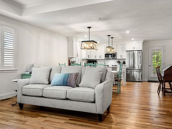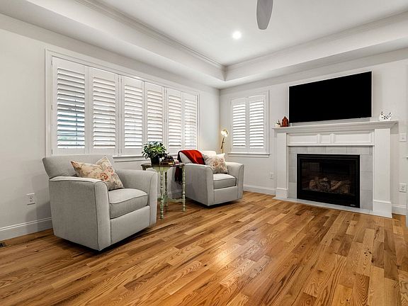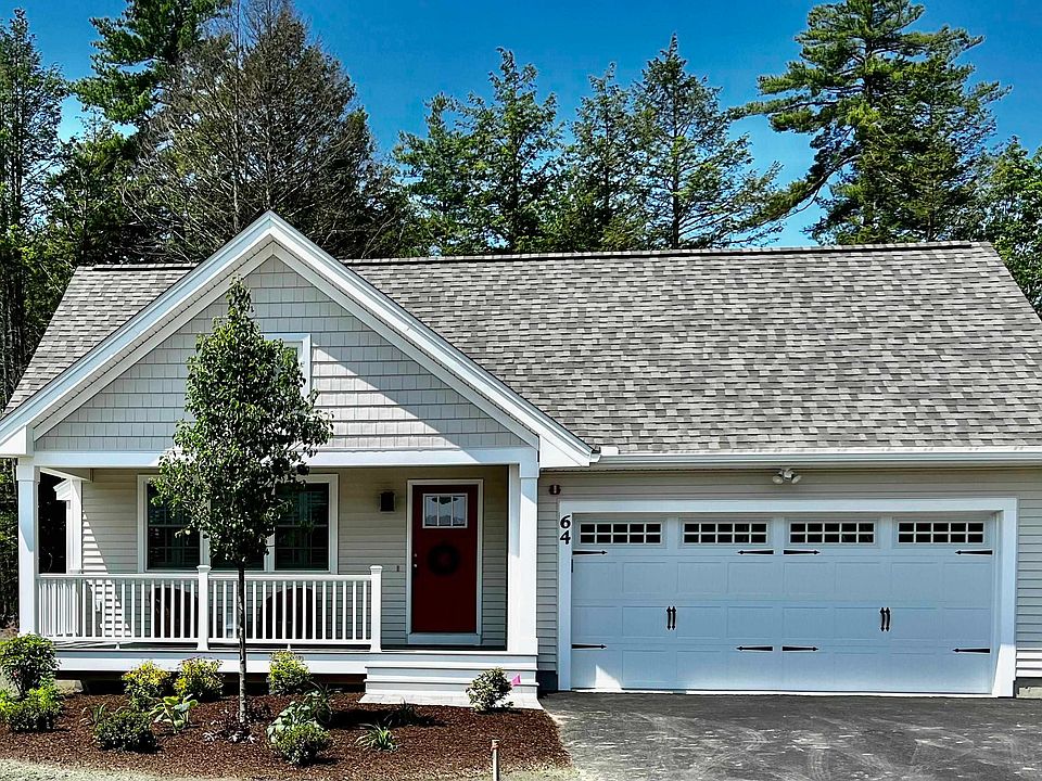 Better than new! Completed in February 2023, this extraordinary property in the sought-after 3 Ponds community is available immediately! Exceptionally well-appointed, this 2 bedroom, 2 bath home offers the ultimate in luxurious one-story living. The spacious, open concept floor plan is complemented by numerous thoughtful upgrades, including a generously sized kitchen island, gleaming quartz countertops and backsplash, fireplace with granite surround, hardwood floors throughout, ceiling fans, numerous recesssed lights and custom plantation shutters! The master suite boasts a lavish tile shower with a convenient bench and glass door, along with a sizable walk-in closet situated just steps from the laundry area. The full basement features finished stairs, ample storage space and potential for future expansion. The exterior of this gem is also picture perfect, featuring a covered farmer's porch with railings and recessed lights. A scenic backdrop of lush trees at the rear of the home rounds out the outdoor space. Enjoy privacy and serenity as you unwind on the screened porch or picturesque stone patio. New, stainless steel kitchen appliances and washer/dryer included in sale! Community amenities include a 3500-foot clubhouse, exercise room, heated outdoor pool, and scenic walking trails equipped with fitness stations. Don't miss it!