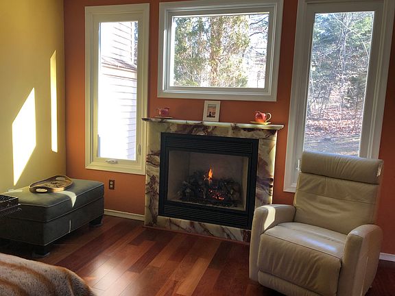 Come check out this cheerful, move in ready town house with nothing to do! Open concept floor plan with beautiful Brazilian cherry hardwood all over the first floor. The gas fireplace with an onyx mantel and a remote control with many comfortable settings, creates the perfect atmosphere to enjoy the cold winter days. Open foyer with ½ bath and entry to roomy garage. The kitchen features updated appliances, sparkling quartz counter tops and a breakfast bar. The dining room with big glass sliders views the woods in the backyard, and gives you the privacy to enjoy the peaceful scenery all year round. Armstrong laminate all over the second floor offers easy and low maintenance. Huge master bedroom has a gracious walk in closet, en suite Jacuzzi, new double sink with granite countertop and a stand up shower. Everything comes with the most beautiful view of the woods for you to enjoy every morning. The second bedroom is also roomy with en suite bathroom. You will appreciate the two zone heat Carrier furnace, brand new water heater (October 2019), new roof (October 2019), thermopane windows. Enjoy the conveniences of condo living with central Air Conditioning, City water, City Sewer and Natural Gas. Fabulous location close to Glastonbury center, schools, shopping, highways, yet cucked up in a wonderful neighborhood setting. Two parking spaces in front of garage and plenty visitor spaces. No assessments owed. Yes to pets. Agents are welcome to bring their clients and get 2.5%