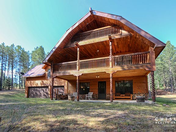 If you're looking for that mountain cabin that can sleep the whole family, and all their friends, you need to explore 64 Valle Grande Trail. A custom home situated on an oversized 1.1 acre lot, nestled among the trees and sitting below the road, this home feels very private while being only a few short blocks from Angel Fire's town center! Inside, you'll find a creative layout where the parents, or grandparents, get the entire lower level, which includes the master bedroom with ensuite bath, kitchen, and living area while the kids are upstairs. The second floor has a second living space with a wood burning fireplace, large game room area with a pool table, and bedrooms and baths on both sides. A large deck with hand carved wood beams is off the second floor living area providing forest views. The third level is a real treat for the little ones. A bunk room with sloped ceilings and a small private covered patio that is so cute. Use one, two, or three levels - this home gives you the flexibility to shut off the levels you aren't using and save on the heating bill. This home comes fully furnished and is move in ready. Let the memories begin!