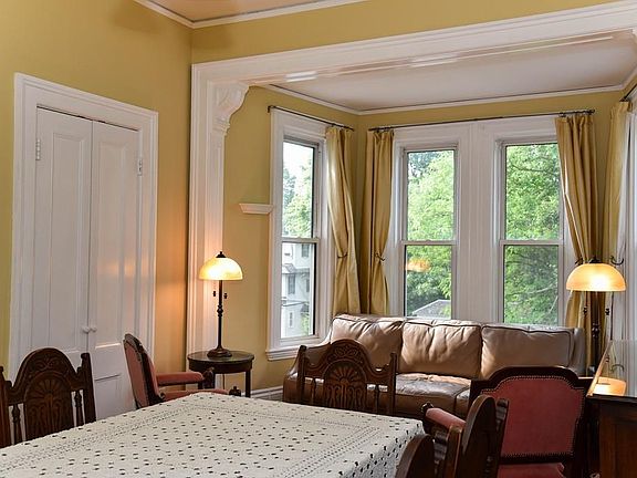 Easy breezy downtown living! Truly a unique offering, this one bedroom home is a find. Because this home was designed before electrical power, this property is built to take advantage of light and ventilation through the magnificent windows of the living/dining rm and bedroom which also feature gleaming hdwd flrs and exceptionally high ceilings. The eat-in kitchen boasts granite, glass front cabinetry and good storage. Now for the details in this home: unreal bedroom storage - architecturally designed HUGE closet space with crown molding, shelving and lighting; period marble mantel (decorative); crown molding; and large rectangular bay window captured by bracketed arch. In addition to the unit features, additional storage is available in the attic and basement. One car parking plus guest parking. Sited across from Bowden Park which hosts our local Farmer's Market and convenient access to the commuter rail, Cedar Park shops, the Fells, Ell Pond, Melrose's bustling downtown and more!