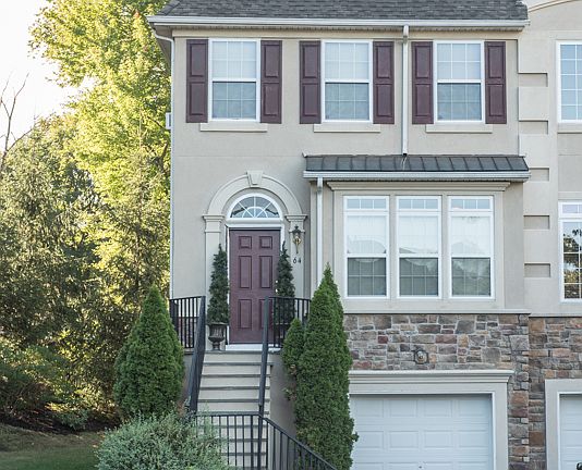 Magnificent and Immaculate Tri-Level NYC Brownstone Style Corner End-Unit w/ Double Crown Molding and Gleaming Hardwood Floors Throughout Main Living Areas set on Premium Cul-de-sac Location Backing to Green Acres. Features Include Eat In Kitchen with 42'' Cabinetry, Granite Counters, 16x16 Ceramic Tile & Stainless Steel Appliances. Spacious Living Room features Gas Fireplace & French Door to Deck Overlooking Tree Lined Property. Large Master Bedroom Suite Hardwood Floors, Tray Ceiling, Walk In Closet & Master Bath with Whirlpool Tub. Second Bedroom with Hardwood Floors & Adjacent Full Bath. Finished Basement with Laundry Room with Customized Storage and Powder Room. One Car Garage with Closet-Tech Storage. Private Elevator with Access to all Three Levels. Close to NYC Transportation & Shopping.