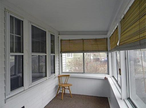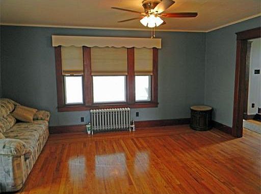 PRICED TO MOVE is this spacious 3 Bedroom, 1.5 Bath two-story home on a great residential side street. Beautiful refinished hardwood floors throughout, and updated kitchen with all new flooring, cabinetry, counters and appliances. Large dining room open to large living room. Fantastic enclosed front porch with storm windows and screens, as well as a covered back porch. The second floor has three roomy bedrooms and a spacious full bath with many updates! Full basement, mostly finished with recessed lighting and vinyl tile flooring. BRAND NEW ROOF! Replacement windows, aluminum siding, detached over-sized garage and more! DON'T MISS OUT!