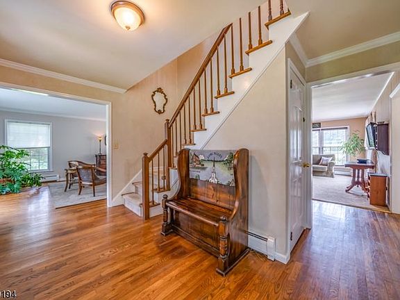 Shangri La! Welcome Home to this fabulous Colonial nestled on 2 acres of privacy! From the moment you step into the foyer you will fall in love with this Beauty w/ hardwood floors throughout, spacious living room, formal dining room, family room with wood burning fireplace insert, eat-in kitchen, powder room, laundry room, sliders to deck and absolutely beautiful private lot with inground pool, mature landscaping. Second level features Master Bedroom with full bath, dressing room, wood burning fireplace, hardwood floors on second level, 3 additional bedrooms, main bath, attic for storage. Full unfinished basement with high ceiling can be finished for additional living space.