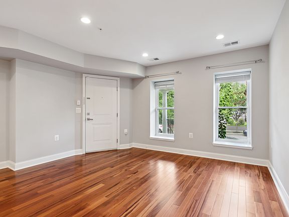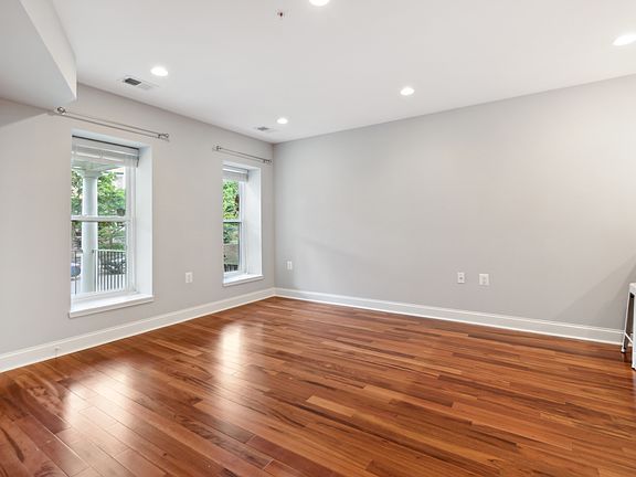 This stunning two-bedroom, two-bath condo boasts a backyard oasis and a thoughtfully designed interior. Step inside to find a sunlit living area with beautiful hardwood floors throughout. The modern kitchen features a spacious breakfast bar, Carrara marble countertops, and stainless steel appliances. The large guest bedroom, which could easily serve as a home office, is conveniently located down the hall, with a full-size washer and dryer and a massive storage closet. The owner's suite offers a luxurious en suite bath with dual sinks and a walk-in closet with custom Elfa organization. French doors open to a generous private deck, perfect for relaxing and entertaining, with views of the lushly landscaped backyard and a secured parking spot with shared access to an EV charger. Renovated in 2017, this boutique condo is ideally situated in Bloomingdale, just one street from the charming Crispus Attucks Park. You'll be just blocks away from popular DC spots like Red Hen, Etabli, and Big Bear Cafe, with plenty of dining and entertainment options. Don't miss the Bloomingdale Farmer's Market on Sundays. Owner pays for water