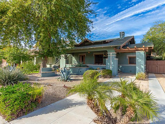 Rare opportunity to own a piece of Phoenix history! Built in 1914 for the first AZ State Treasurer, this is one of the finest examples of a Craftsman Bungalow. Original hardwoods, built-ins, door hardware and so much more! Grand room spaces with high ceilings. Many updates throughout to include electrical, plumbing and updated kitchen. Detached carriage house is in need of complete restoration but what a great value proposition! If you love a front porch, this is the one! East side courtyard along with secured parking. Large backyard w/ all the space needed to make your own! East breakfast rm adjacent to kitchen along w/ office/library in the front of the home. Ton of windows and natural light throughout! Premium location - walk to light rail, restaurants, parks and the arts!
