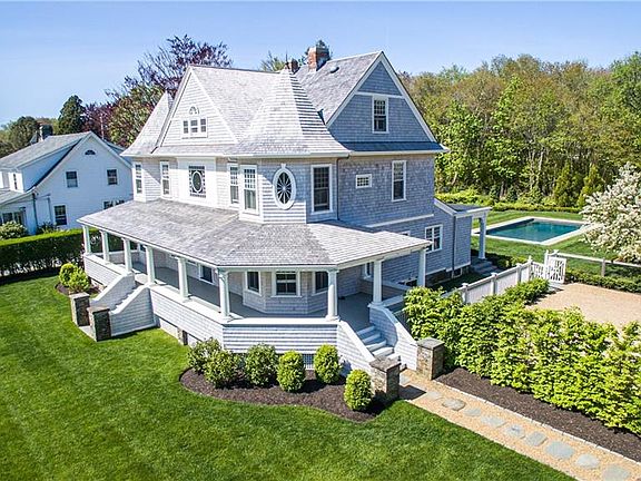 This extremely rare, surprisingly private and beautiful compound in the heart of the village was created through a collaboration with award-winning DiMauro Architects and landscape architect, Hali Beckman, which resulted in the exceptionally stunning transformation of this classic 3,394 sq. ft. village, 4-bedroom Victorian. Historically appropriate, the renovation honors the history of the house while updating it for 21st-century living. Distinguished by octagonal twin turrets with a striking cross-gable, the house offers some Newport Bridge and winter water views and features a quintessential covered veranda that captures coastal breezes.A spacious foyer highlighted by a fireplace with an original mantle is flanked by a parlor and dining room with fireplace.The designer kitchen overlooks the back yard and saltwater pool and opens to a dramatic, light-filled family room with a cathedral ceiling and impressive floor-ceiling fireplace. A laundry room, half bath and mud room complete the 1st floor. The 2nd floor offers two en-suite bedrooms, an additional bedroom and sitting room while the 3rd floor has a spacious loft-like bedroom with a marble bath and an office. A captivating 576 sq. ft., 1-bedroom guest cottage built in 2018 is surrounded by hydrangea and framed by a pergola with climbing English roses, while a custom stone fireplace is the focal point of an entertainment terrace off the pool. A fabulous outdoor shower and one-car garage complete this amazing property.