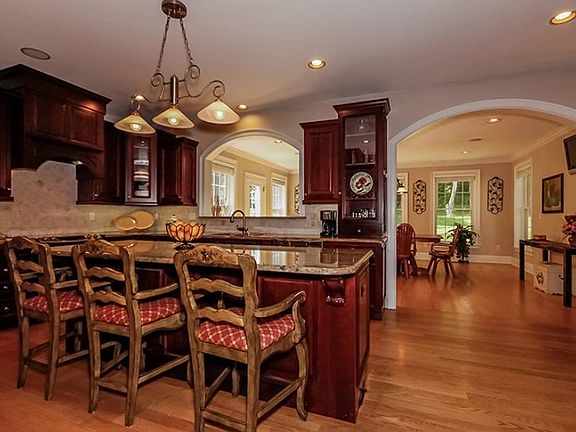 A custom built home with no expense spared! Gracious floor plan with hardwood floors that extend throughout the home as well as extravagant trim work, detailing and 9' ceilings. There is an expansive cherry kitchen with stainless appliances and granite - many cabinets with glass fronts - that opens to a family room with coffered ceilings and fireplace as well as to another living area/sun porch that views the private rear yard that can accommodate a future in-ground pool. Adjacent to the family room is an office. Upstairs there are four large bedrooms as well as a reading loft nook flooded with light from the spectacular arched front window. The master bedroom is a three-room suite and the elegant tiled bathroom features a bubble tub as well as an over sized steam shower. All three full bathrooms have granite counter tops.Make this home your own - it is very special