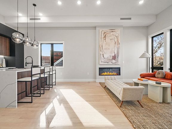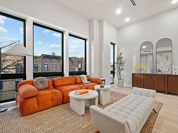 MOMENTS FROM RIVERVIEW FISK PARK and HOBOKEN. Welcome to 64 Webster, built by one of Jersey City's most sought out Developers' Blue Chip Properties’. This 3 bedroom 2 full bath duplex unit was designed with timeless interior design, top line finishes and fixtures, quality craftsmanship and modern technological features. This home sits on sought after Webster Ave Enclave for it's close proximity to Hoboken, Riverview-Fisk Park, Central Ave and Palisade Ave gourmet restaurants! Your main floor opens to an open concept Dining & Living featuring 12 ft high walls lined with oversized Andersen Energy Efficient windows, floor to ceiling tempered glass accent wall, natural light and realistic flame fireplace. Your Chefs kitchen features designer - two tone cabinetry, Thermador Stove, Thermador Heating Drawer, Panel Ready Thermador Fridge, pot filler, oversized double waterfall quartz center island and countertops backed with luxurious porcelain backsplash, West elm accent lighting, Oversize Double Window and externally vented Hood Vent. Main level features Primary bedroom designed with custom millwork, bedside pendant lighting, double walk-in-closet with custom built-ins and large private balcony with NYC views. Your ensuite bath which has been designed with modern yet warm natural tones to create a spa like ambience and offers oversized double vanity, soaking tub, warm pendant lighting, multiple Kohler Body Sprays and shower head. Two additional bedrooms with finished custom closets, an Oversized Full bath with oversized double vanity and floor to ceiling limewash tiles, laundry room with Top Line Washer / Dryer complete your main level. Your upper outdoor level enters from recessed lit staircase, glass accent wall and wet bar backed with accent lit custom backsplash and wine fridge and custom cabinetry. This leads out to an oversized rooftop with SOME OF THE BEST NYC VIEWS in the heights, top line astroturf and trex decking, gas / electric and water hookups making it perfect for entertaining and creating memories. Full Smart Home technology allows for ease of living, complete with Google Nest doorbell, Security Cameras, Google Smart Hub, Smart Thermo and Smart Touch Screen Switches, Lighting Dimmer Switches, and more all accessible via smartphone. Garage features RARE Side-by-Side parking and a separate Level 2 High Voltage EV Charging outlet for each unit as well as security camera. Home is complete with Blue Chip Properties' Signature exterior facade and recessed drive and landscaping. Property comes with 10 year warranty and may qualify for 5 Year Tax Abatement . Please note that sqft is approx.