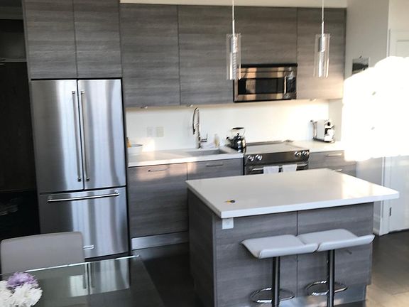 Gorgeous one bedroom one bathroom Condo in the highly sought after Wells Street Schoolhouse. This Unit features numerous upgrades including 12ft. ceilings, hardwood flooring, kitchen island, faux brick feature wall and much more. Open concept kitchen/living room has extra high windows providing a lot of natural light. This historic building is located in the heart of Aurora's Cultural Precinct, and is steps to Library Square, The Armoury (now a Canadian Food and Wine Institute facility operated by Niagara College), Sheppard's Bush Conservation Area (hiking trail), Yonge Street restaurants and shops, Concerts in the Park, Farmer's Market and the GO train. Note this is an unfurnished rental unit (photos show furniture and grill not included) Inclusions: Washer, Dryer, Fridge, Stove, Dishwasher, Microwave. Unfurnished, except for (2) island chairs. Building Amenities Storage Locker Meeting/Party Room Heating & Cooling/ HVAC is located within each unit. Includes one parking spot. Includes water, gas, hydro. Tenant is responsible for internet/cable/phone.