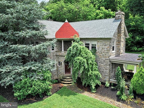 Castle vibes abound in this stunning Circa 1937 3 bedroom 1 1/2 bath Sandstone home right in the heart of Adamstown Borough! Nestled on 2.1 partially wooded acres, beautifully restored and maintained with all of the Charm of an older home! Your eye will be immediately drawn to the gorgeous turret and tower entry with arched wooden front door and stunning veranda overlooking Adamstown! Once inside, all of the meticulously maintained original woodwork will take your breath away! Refinished 1 inch Oak hardwood floors throughout the main level, refinished 2 inch pine floors throughout upper level, original stained wooden doors and open staircase, large deep set 10 year old double pane windows and beautiful trim work throughout! Living room boasts large stone fireplace, 4 foot long ceiling fan and picture windows! Dining room boasts plenty of natural light and built ins! Eat in kitchen features oak raised panel cabinets, built in wine rack, upgraded stainless steel appliances, corian counter tops and breakfast bar! All 3 bedrooms are generously sized, all boast cedar lined closets, 4 ft long fans and large windows! Large partially finished attic with a potential 4th and 5th bedrooms! Waterproofed basement with recently parged walls and working stone fireplace! New roof in 2018 with 30 year architectural shingles! Also featuring a 2 car detached garage, side porch and back patio! This is the home that everyone in town has always loved from afar! Do not miss out on your chance to own this one of a kind beauty!