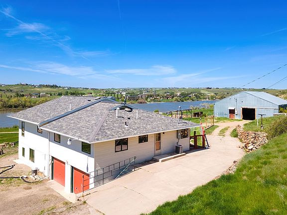BEAUTIFUL HOME WITH ACREAGE, MISSOURI RIVER FRONTAGE & HORSE PROPERTY - this Wilson Butte Road property has it all & room for more! The house has over 3,100 sqft, the main level featuring vaulted ceilings, a kitchen, gas oven/range, walk-in pantry, built-ins & breakfast bar opening up to the dining area & living room with corner gas fireplace. French door entry to the master suite, huge walk-in closet with built-in organizers, full bathroom with heated tile floors, clawfoot tub, walk-in shower & double sink vanity. Additional 1 bedroom, 3/4 bathroom & laundry room (washer & dryer included) with storage on the main. The bright walkout lower level is ready for you to make your own & is already roughed-plumbed for a bathroom. Attached heated 2 car garage with workspace area plus detached 2 car garage/shop. You & your animals will love the corral, 4,300+/- sqft barn with power, water spigots & more! All of this on 6.68 +/- acres with Missouri River frontage & just minutes from city limits.