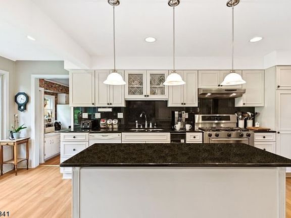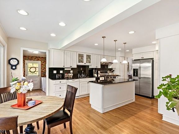 This expanded ranch provides the convenience of single floor living, with additional 2nd Fl. space for today's work-from-home needs. A decorative front door opens to reveal an open flow from LR to DR with wood floors and natural light. The open feel continues from the cozy FR w brick fireplace to the eat-in kitchen equipped w white cabinets, granite counters, SS appliances, and easy clean floor. A wall of windows look out to a tranquil backyard w mature trees and grassy hill. A large MBR offers 3 walk-in closets and remodeled en-suite bath in neutral tones. A full bath, 2 bedrooms office, and laundry room w extra fridge finish off level 1. A skylight-lit 2nd floor offers 3 rooms, a full bath, built-ins, closets galore. A handy half bath is accessed from the backyard. Close to trans, hgwy, shops. Highly ranked school