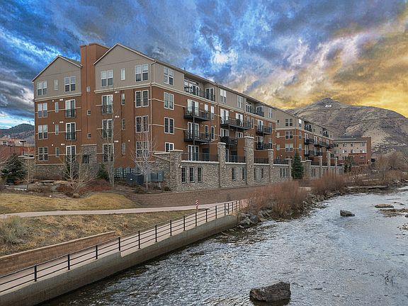 Millstone 3rd Floor End Unit, Lots of sunlight, Beautifully upgraded Maple, Granite, Stainless Kitchen, Views, 2 heated GARAGE spaces! 2 Storage Lockers! See Clear Creek, Table Mesa, Lookout Mountain! In the Heart of Golden, secure entry, Elevator access, beautiful complex on the river walk. Meticulously cared for. Extensive hardwood floors, central fireplace becomes the focal point after looking across downtown golden and the mountains. Large Kitchen Island. The 3rd floor balcony is the perfect place to barbecue!