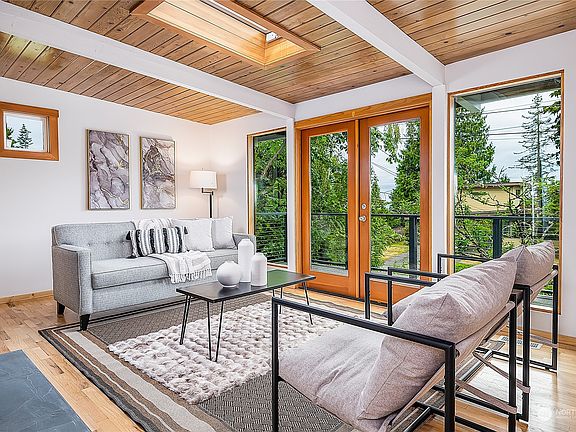 Nestled in a serene cul-de-sac in Edmonds this impeccably remodeled home combines tranquility and modern elegance. Enjoy stunning sunsets from the living room and three-tiered back deck perfect for year-round gatherings. The cozy living room, warmed by a gas fireplace, opens through French doors to a breezy outdoor space. The spa-like master bath offers a peaceful retreat enhanced by natural light from skylights throughout. Walking distance to downtown Edmonds, Yost Park, grocery stores, dining, and the waterfront. Experience the best of suburban living with easy access to I-5 and top-rated schools all in a close-knit neighborhood where community flourishes. Birdwatchers will delight in the backyard's feathered visitors, adding to the charm