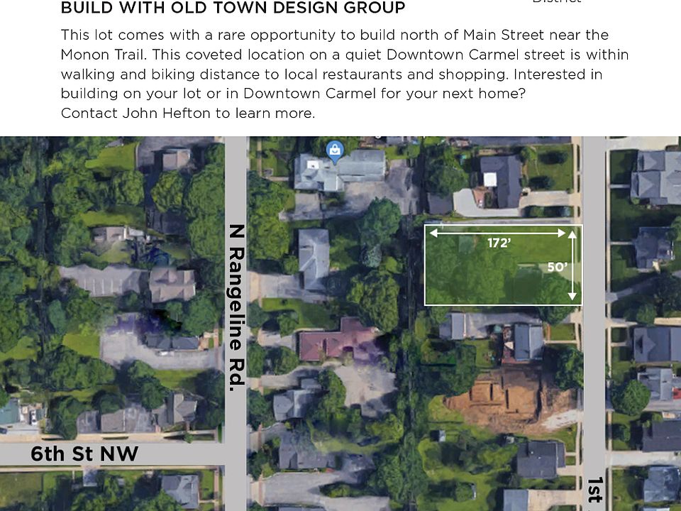 ***Existing home to be demolished for new construction with Old Town Design Group. Just a short distance to shopping and urban amenities, this lot is located at the heart of downtown Carmel. It is perfect for a custom built rear load Old Town Design Group home.