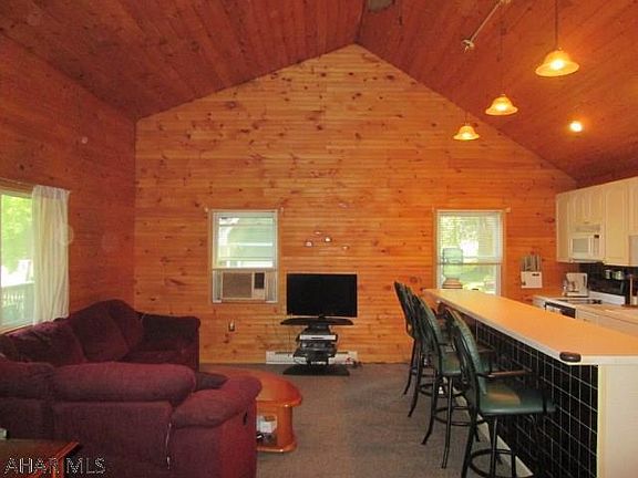Terrific property along the Juniata River! Kitchen features a large center island, plenty of cabinets, and all appliances. Spacious living room that draws plenty of natural sunlight. Lovely open floor. Beautiful knotty pine cathedral ceilings give this home a warm and rustic feeling. Detached 2 car garage will provide tons of storage. Huge partially finished loft above garage. Loft could be additional bedrooms or man cave. Enjoy the river view from the wrap around deck. Minutes away from country club and golf course. Walk your kayak down to the river or dock your boat in front of the property. Fishermen will love the top-notch smallmouth bass fishing on the river! Here is your chance to own a rare and unique property!