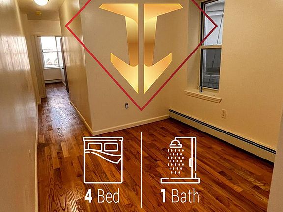 Recently renovated 4bed 1 bath 3rd floor walk up building Separate utilities Close to everything 2 blocks to the high school 2 block to shop rite Section 8 Welcomed Tenant pays 1 month rent 1 month Brokers Fee and 1.5 month security deposit $40 non refundable background check Fair credit 625 or better no evictions Proof of income Proof of ID CENTURY21 REALTY GROUP 1yr lease no smoking sorry no pets landlord pays water & sewer