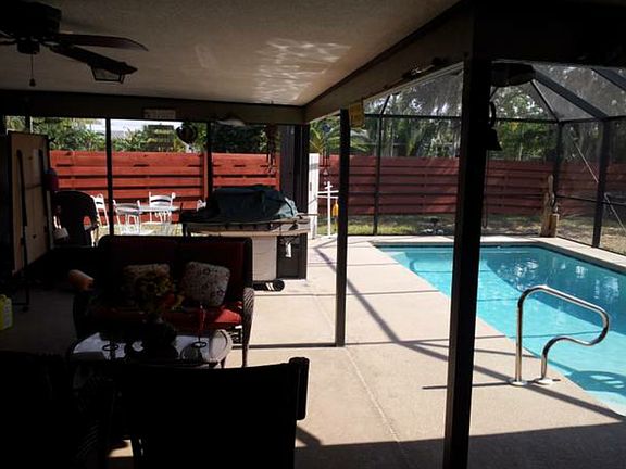 A perfect family home! You will feel right at home as soon as you walk through the doors! Sunken living room with newer ceramic tile and ceiling fans, bright and open with step up access to the dining area/den/playroom. Kitchen has recently been remodeled with new cabinets, fixtures and stainless appliances and offers a spacious eat in area for additional space. Split plan offers master bedroom suite privacy. Extra large lanai area surrounds sparkling pool, and allows for tons of space for seating, dining, entertaining and relaxing. Spacious back yard is completely fenced in, with brand new fencing and gates...ideal for family fun, children and pets...plus complete privacy! Home sits on a corner lot, in a nice Port Charlotte neighborhood with quick and easy access to shopping, dining, schools and all amenities! New air conditioning ducts, new air conditioner units, new attic insulation, and new electrical panel. You'll love this inviting, warm and affordable home...