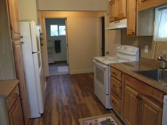 Property Id: 145173 Cozy home remodeled 6 months ago with 2 bedrooms with a very large optional loft bedroom. 1 full bath. All new paint, flooring, carpets. Newly remodeled kitchen with new appliances. Separate laundry room with new washer/ dryer. New blinds throughout. Well kept property. Fenced front and private backyard. RENT INCLUDES: PAID WATER, GARBAGE, YARD SERVICE. No garage, but large cement driveway parking area for 2 cars plus guests. One small pet upon approval with separate deposit. DEPOSIT: $750. upon move-in, $250. more each month for next 3 months. TOTAL DEPOSIT: $1500.