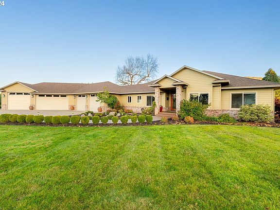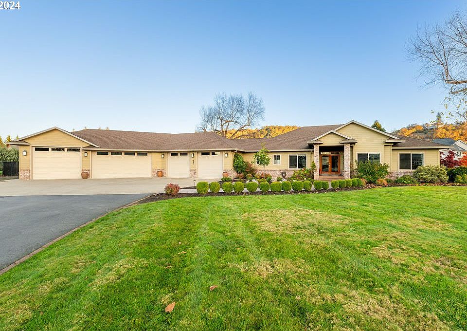 This beautiful single level custom-built home is located in the riverfront Stonebrook gated community. Features in this ever-desirable Garden Valley property include stunning Acacia wood floors, solid core doors, 9-foot ceilings throughout, open floor plan, 3-foot doorways for handicap accessibility great room with vaulted ceilings, gas fireplace, office or den, and a large laundry room with tons of storage and pantry. The kitchen is gorgeous with a huge island and eating bar, granite counters, stainless steel appliances, Kitchen Aid double ovens, dishwasher, 5 burner gas cooktop, and custom soft close cabinets with many custom features. The well-appointed primary suite has beautiful views of the back yard, walk-in closet, custom tile shower with glass doors, double undermount sinks with granite counters, tile backsplash and commode room with bidet. The dining room has two separate French doors leading to the deck and patio for convenience. The massive garages are partially gas heated, oversized, and extra deep and encompasses 2700 sq. ft. There is a 10-foot-high door for RV storage as well. This lovely home has been beautifully maintained and shows great pride of ownership inside and out. Enjoy the large corner lot of manicured grounds, with extensive flowers and shrubs, raspberries, blue berries, river access, river irrigation rights, and fenced back yard with inviting vaulted covered patio for relaxing and entertaining. Call for your private tour today!
