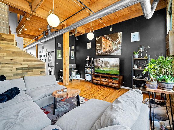 Welcome home to 640 Congdon Ave. A very opportunity to own in the Historic Shoe Factory Lofts! Perfect for the Urban soul with all the perks of living in a well-established suburban community! Your lifestyle wish list will have all the boxes checked: close to outdoor adventures along the Fox River, walking and bike paths, fishing, and public boat launches, all with the convenience of easy access to I-90, Downtown Elgin, and the Metra and other public transportation! There's something special about living in a place where the strength and dignity of the structure is proudly on display. Brick walls, massive timbers, soaring exposed wood ceilings, original thin plank hardwood floors and wonderfully huge windows! Each townhome in this historic 1891 Shoe Factory tells the unique story of a bygone era when craftsmanship and the quality of materials were designed to withstand the test of time. What was once a functional structure is now a breathtaking work of art. Masterfully designed to honor its history while providing all the modern comforts of home, you'll be able to proudly dwell in this rare and treasured environment. Plus, the unique zoning for both commercial and residential use opens up incredible opportunities for an ideal live/work space. Among the three levels and more than 1700 square feet, you'll find the perfect setting for both comfortable everyday living and epic entertaining. The ground level provides a wonderful setup for the artist, designer, or entrepreneur who longs to work and create from home! A cozy bedroom with separate entrance and full hall bath are perfect for guest space, roommate/in-law quarters, or private office. On the main level, you'll find a beautiful, bright living room with dramatic accent wall and reclaimed wood paneled stairwell wall. Memories are sure to be made in the spacious eat-in kitchen which utilizes the high ceilings to provide ample maple cabinetry. Contrasting black and stainless appliances (including gas range) and the functional counter space with tile backsplash are sure to delight your inner chef. Convenient new stacking washer and dryer are a huge plus! Your private place of rest awaits on the top level, with French doors leading to the lovely master bedroom, complete with huge closet and cherry wood built-ins. A wide hallway with floating shelves and extra storage in the hall closet lead to the beautiful full bath and 3rd bedroom. All this, with lovely patio overlooking the grassy commons. Also included is a deeded oversized extra deep 1 car garage (conveniently located right in front of the unit) plus additional exterior parking spaces as well. Hurry!