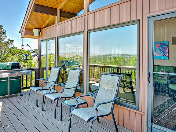 Stunning Lindal Custom Cedar post and beam Home in exceptional Location with breathtaking Views! Minutes from downtown Prescott, and situated on almost a half acre cul-de-sac lot. The home backs to Hassayampa's Capital Canyon Club property, providing golf course views but without HOA fees! The main level offers single level living while the remodeled lower level offers ample living space for extended family/guest space with kitchenette, 2 add'l bedrooms and bath, home theater, ''sauna'' room with infrared sauna, and office. •Exceptional amenities: newer Roof (appx 10 years old), new A/C unit with indoor coil, furnace blower motor, and module, wood clad vaulted ceiling on main level, gas fireplace with custom stone surround, and Pella windows (original). The conditioned Arizona room on the main level expands your views and living space. forget to view the features list for a list of upgrades and amenities in the home. Indulge in turn-key convenience by purchasing the home fully furnished with most artwork. This residence seamlessly blends modern amenities, breathtaking views, and versatile living options. AND Owner may carry with substantial down payment!