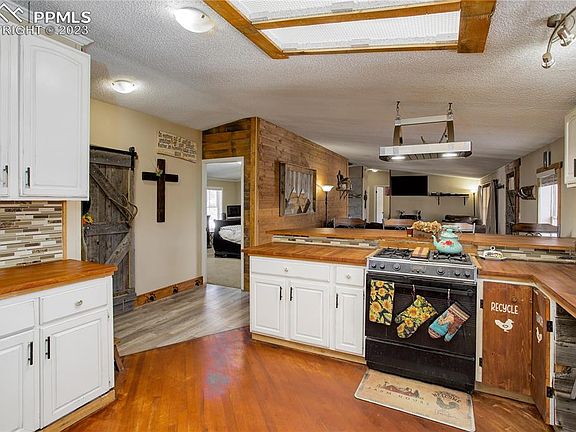 PRICED TO SELL! Beautiful 1944 sq. ft., recently updated modular home on 1.1-acres. New flooring in most of the home last year. Sun shaded composite deck and car port. Recently fully fenced with gorgeous log archway and entry gates. 6 storage sheds and chicken coop remain (some laying hens can remain at buyers request). Currently set up for livestock, but sellers are happy to take down and haul away any outdoor fencing not wanted by new owners. Beautiful tile bathrooms and garden tub in master. Very Large kitchen with butcher block countertops. Wood burning stove with glass viewing door fits 24” logs and keeps this mountain oasis nice and toasty during the winter months! (A pre-installed option for a second stove is in place). Enjoy majestic mountain views from the kitchen and dining room windows OR sit on the large deck with your morning coffee for even grander views of the mountains! With the option for RV hookup, the getaway enthusiast has a place ready OR space for visiting family and friends. Set up on Florissant city water and sewer, you will enjoy the convenience of NO septic rules or pumping and NO well pump maintenance. This home is set up with natural gas as well, all of which are rare commodities for a mountain property. Zip line, trampoline and a few chickens can stay at buyers request! Enjoy full cellphone reception for all major carriers and available high-speed internet. Easy access to Hwy 24 for all your needs and recreation! Come see your new property today!