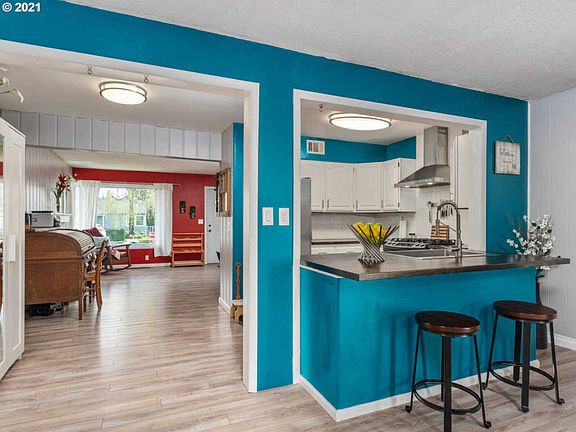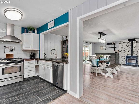 Perfect one level living in desirable Gladstone. The entry welcomes you to a spacious layout w/laminate flooring throughout. Living room w/fireplace, remodeled kitchen w/butcher block counters & SS appliances - eat-up bar opens to great room w/fireplace & dining room. Slider to charming backyard w/covered patio, hot tub, fully fenced . Additional features~ New carpet in bedrooms, remodeled bath, vinyl windows. Newer furnace, AC, H2O heater & electrical panel. Offers due 4/5 @ 4pm