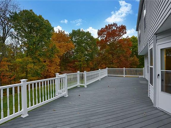 Immaculate two story home at the end of a cul-de-sac; great neighborhood with sidewalks; terrific open floor plan ideal for entertaining; park-like backyard backing to trees; extra wide concrete parking pad; impressive two story foyer; chair rail lines dining room with chandelier; island oak kitchen boasting two pantries, tile backsplash and all appliances; breakfast area leads to expansive no maintenance deck; large family room with fireplace; vaulted master bedroom complete with two walk-in closets, spa tub and shower room; light and bright bedrooms; finished game room with wet bar; separate garage bays; shed and covered patio; new roof with GAF system; newer furnace; newer garage doors; new floors and carpeting; repainted interior; updated hot water tank; newer front door; Great location for travel to Sewickley, Pittsburgh and the Shell Plant; 10 minutes to Airport; 30 minute drive to Downtown Pittsburgh