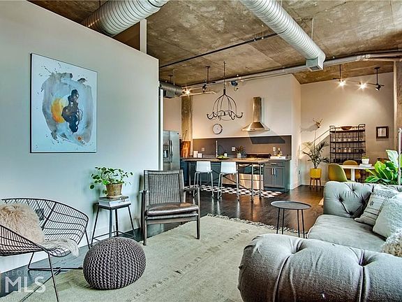 Enjoy the sights and sounds of the city then retreat to your relaxed personal sanctuary. This boutique building features all the hallmarks of a classic loft including exposed brick/ductwork, 10+ ceilings, concrete & designer waxed hardwood floors. More space and upgrades for a modern look than the average 1 bedroom at Glen Iris Lofts. Open concept living/dining/kitchen area perfect for entertaining. Gorgeous wall of windows flood the space with natural light. Kitchen includes grey cabinetry, stainless appliances, gas cooktop. Kitchen wall shelves can be easily added. Oversized master suite with sliding barn door, walk-in closet, separate tub/shower. Extra storage space above bedroom closet. Private balcony with city views perfect for morning coffee, evening cocktails. Perfect 3rd floor location with steps to the entrance/exit that eliminates the need for elevator use. Solid concrete and steel construction, covered parking, saltwater pool, gated entry. Step outside to the hottest thing in Atlanta - the BELTLINE! Walk to Ponce City Market, Piedmont Park, Old Fourth Ward Park, Inman Park, Krog Market, festivals, restaurants, shops, cafes. Strong community. HOA includes Google Fiber, gas, water/sewer, trash, pool, fenced dog run.
